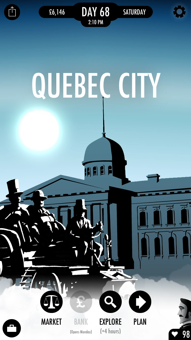 Quebec reminds Passepartout of Paris in more ways than one, including the sort of French that they speak here. He can tour the Château Frontenac, a luxury hotel, while lamenting Fogg's refusal to stay in fancy hotels. Alternatively he can visit the Citadelle, the only citadel in North America, left over from when the British controlled the city and defended it against the Americans during the Revolutionary War.